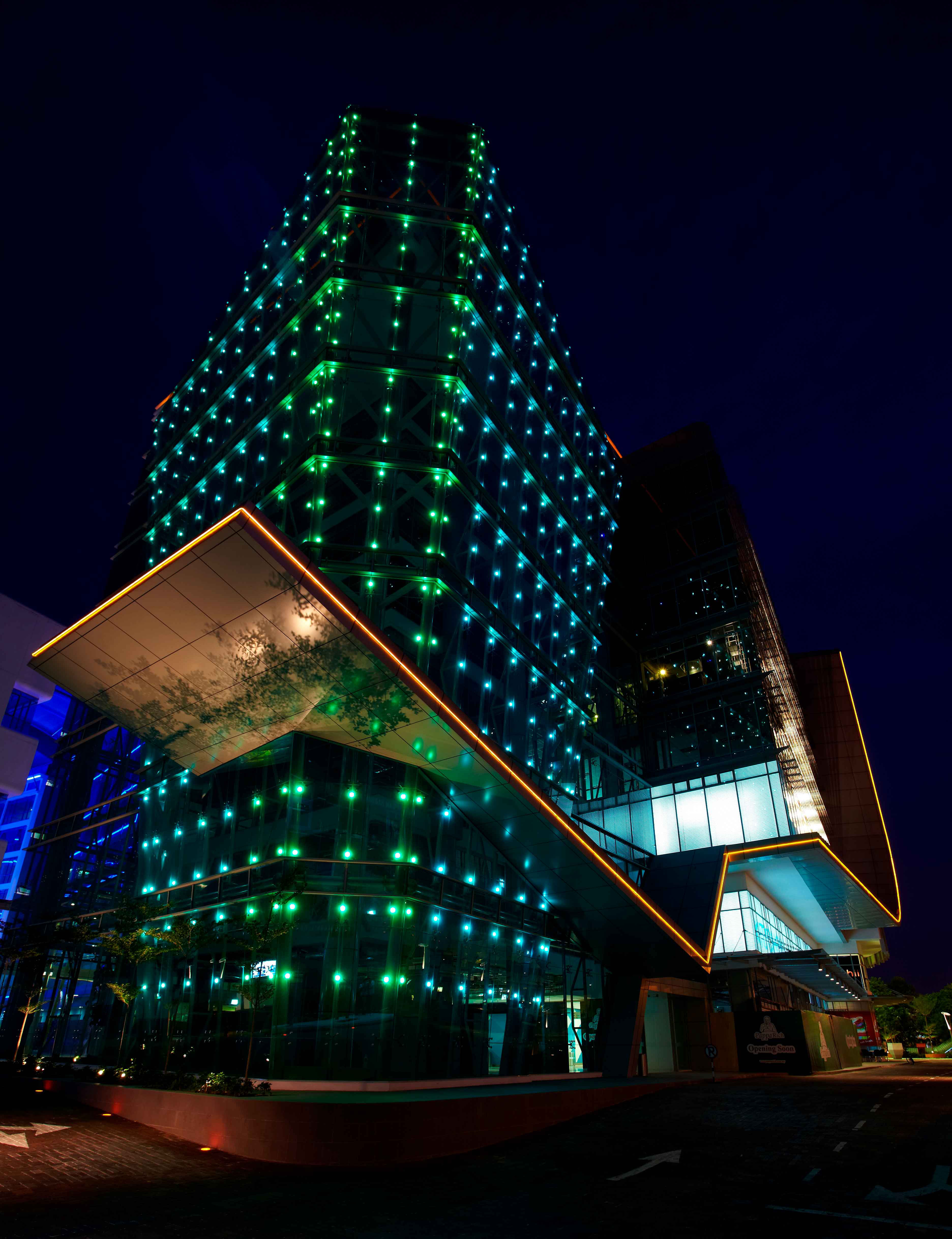 Nothing decorates a skyline better than perfect geometric shapes illuminated in the night by vibrant and every-changing colors. Turn your office building or residence into a landmark with smooth and sophisticate LED lighting.